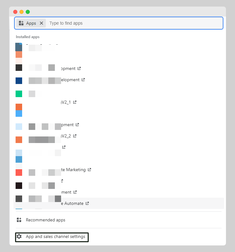 b. Scroll down to the bottom of the page and click App and sales channel settings